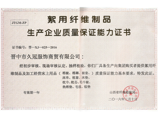 山西久冠服飾有限公司位于晉商故里山西省晉中市。公司注冊商標“久冠”,是山西省教育學會學生服被裝專業委員會會長單位,中國質量萬里行促進會理事單位,中國教育裝備行業協會學校后勤裝備管理分會常務理事單位。